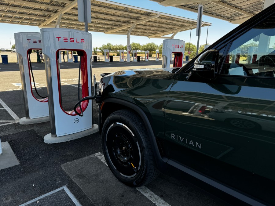 What’s unique about this trip is that the Rivian runs the latest software, which lets you charge at Tesla Superchargers.