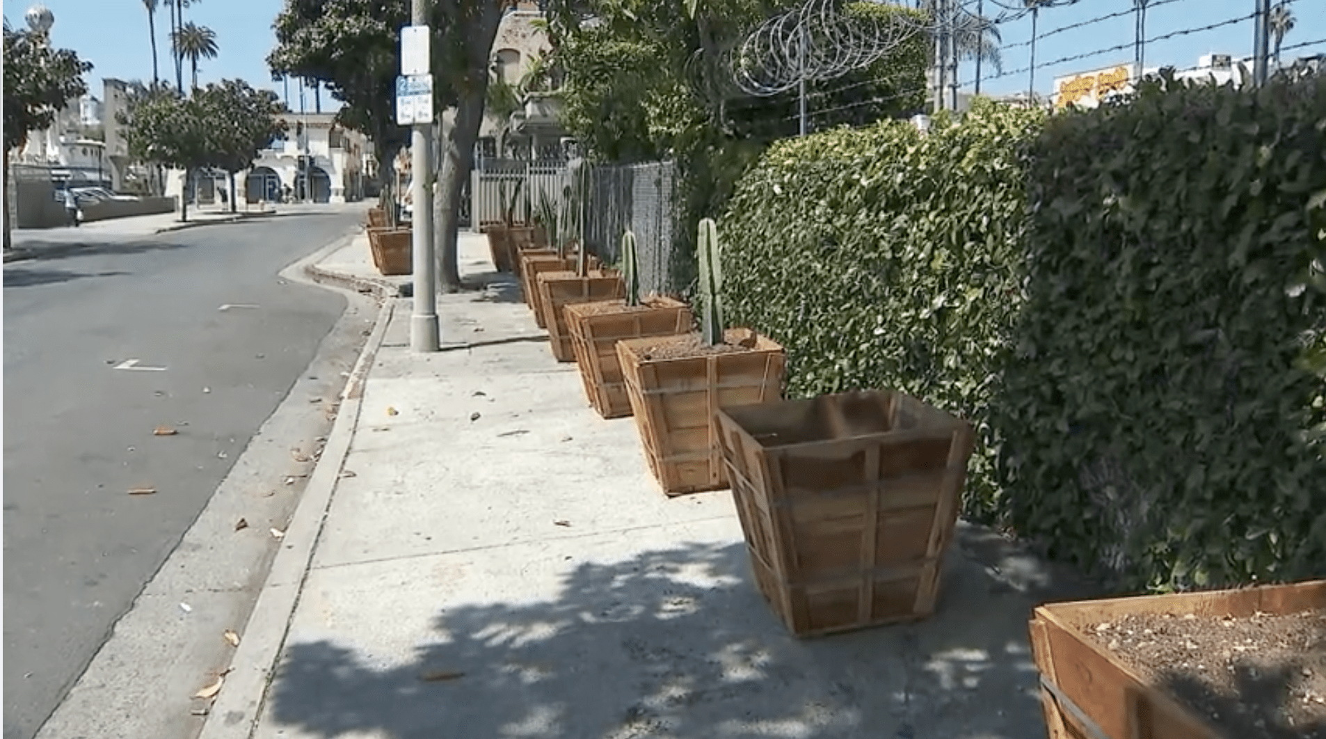 “It keeps things cleaner and gives [the homeless] less space to move them around,” local resident Bensher Leandre told KTLA 5’s Chip Yost.