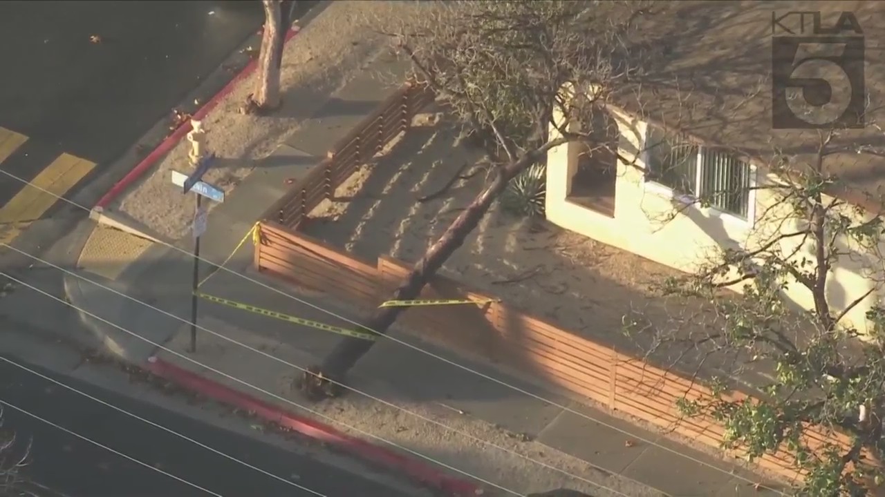 Tuesday’s powerful storm downed at least two trees in Long Beach, leaving two cars and a house with minor damages.