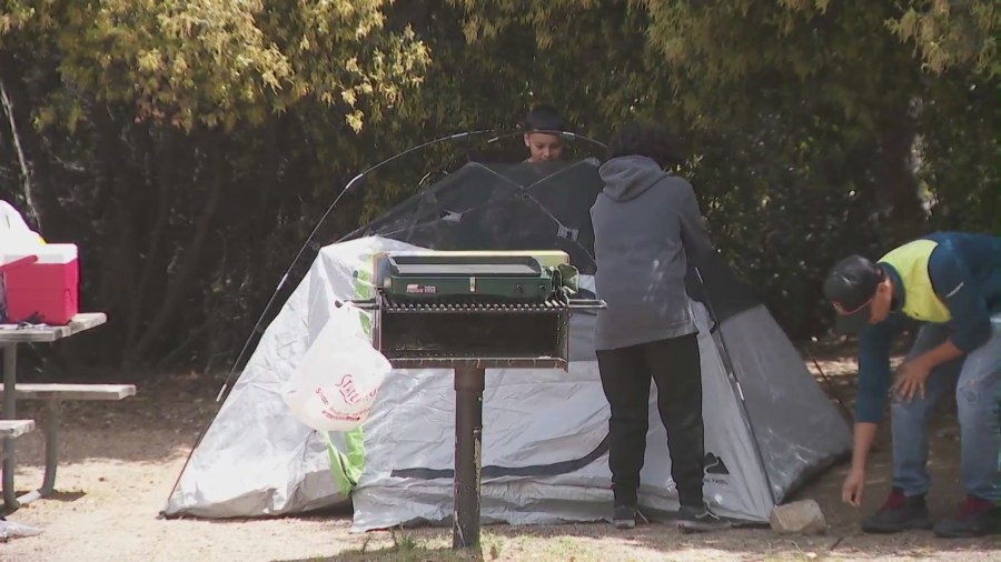 • All food should be stored inside vehicles when camping overnight to prevent bears or wildlife from foraging, Silverwood Lake park officials said. (KTLA)
