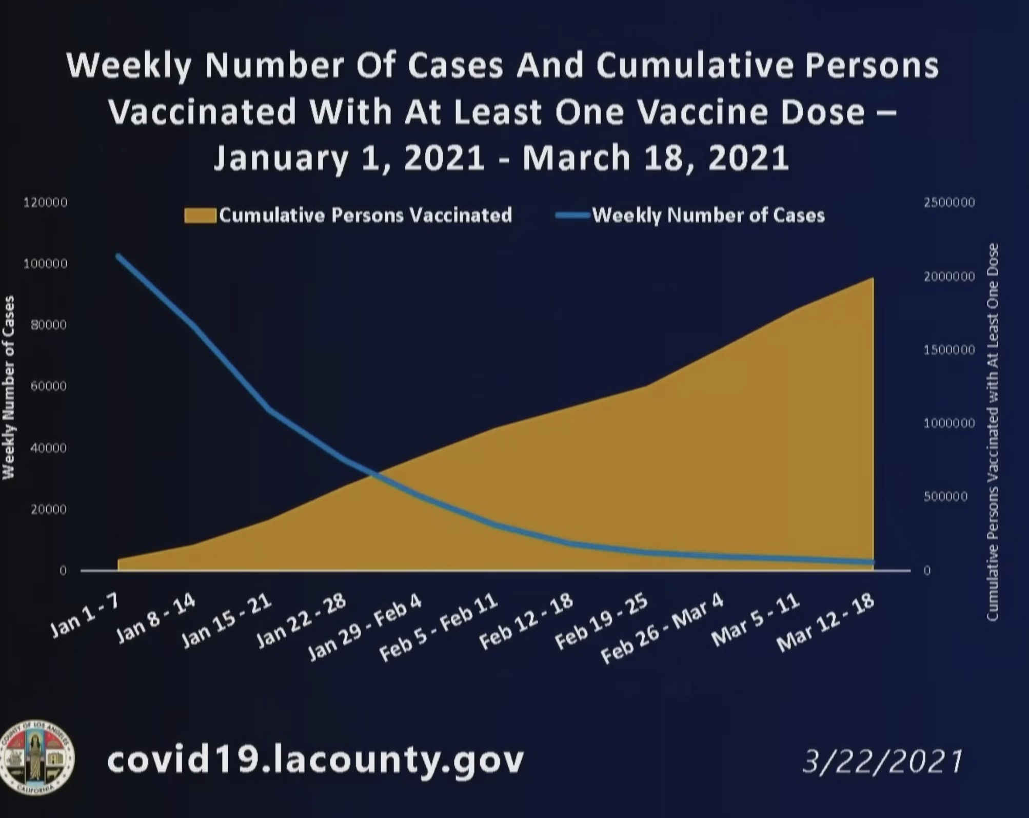 While Los Angeles County still has a long way to go to establish herd immunity, the region is starting to see evidence that the increasing COVID-19 vaccinations are beginning to help curb transmission, the county’s health director said Monday.