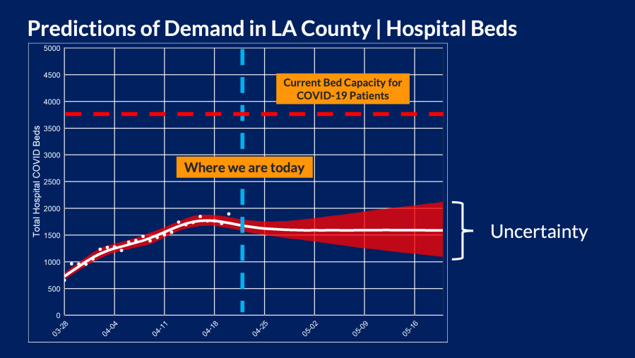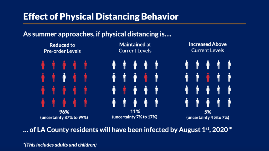 Still, Ghaly issued the same grim warning as before: If social distancing measures stopped or were reduced too soon, nearly 96% of the county’s population could become infected by Aug. 1.