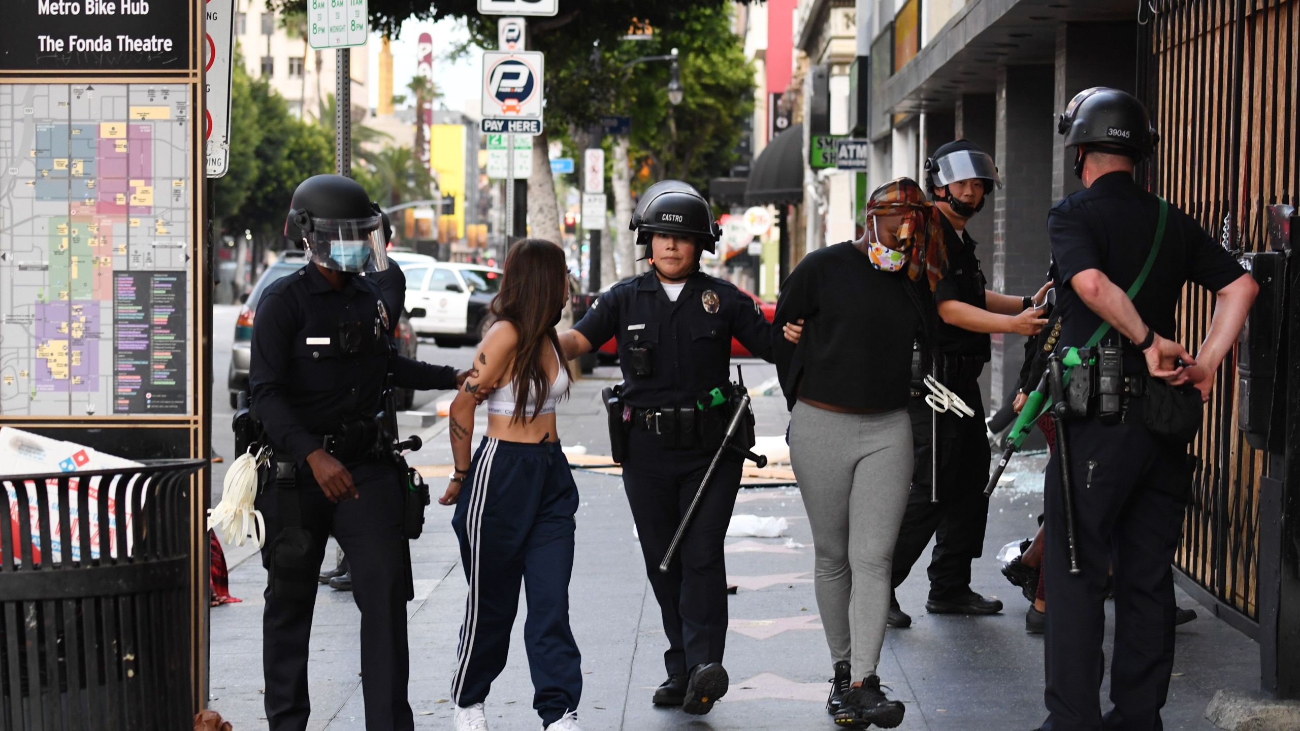 Officers took at least 585 people into custody. Most arrests were for curfew violations, but officers detained 20 people on suspicion of looting and impounded 50 vehicles, a law enforcement source told The Times on Tuesday.