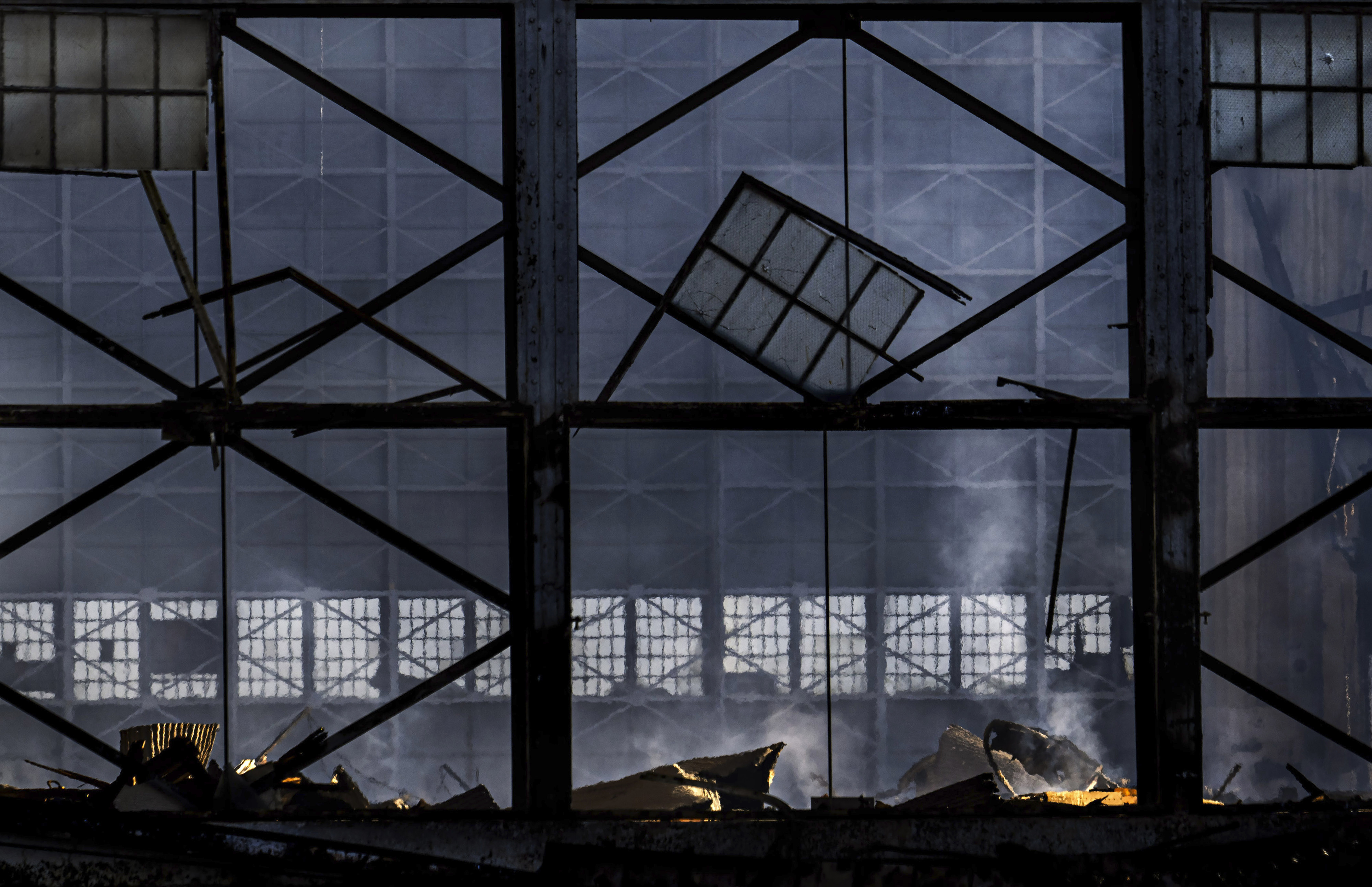 The fire was discovered on Tuesday at the former Marine Corps Air Station. Flames engulfed the north hangar, also known as Hangar 1, which was mostly destroyed.