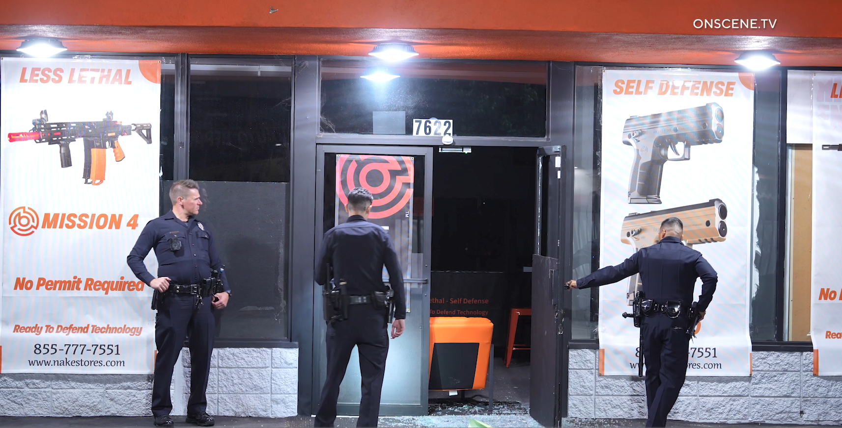Video obtained by KTLA shows officers entering the store through the broken front door before clearing the scene and beginning to speak with employees.