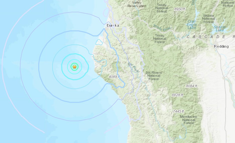 The earthquake occurred 39 miles from Eureka, Calif., 46 miles from Arcata, Calif. and 51 miles from McKinleyville, Calif.