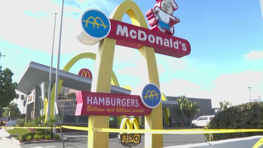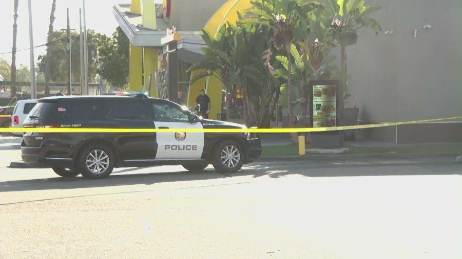 A Fullerton Police Department spokesperson confirmed to KTLA that officers were dispatched to the McDonald’s, located in the 1300 block of South Brookhurst Road, regarding a call stating that two men were standing in front of the business’ doors, possibly under the influence of drugs.