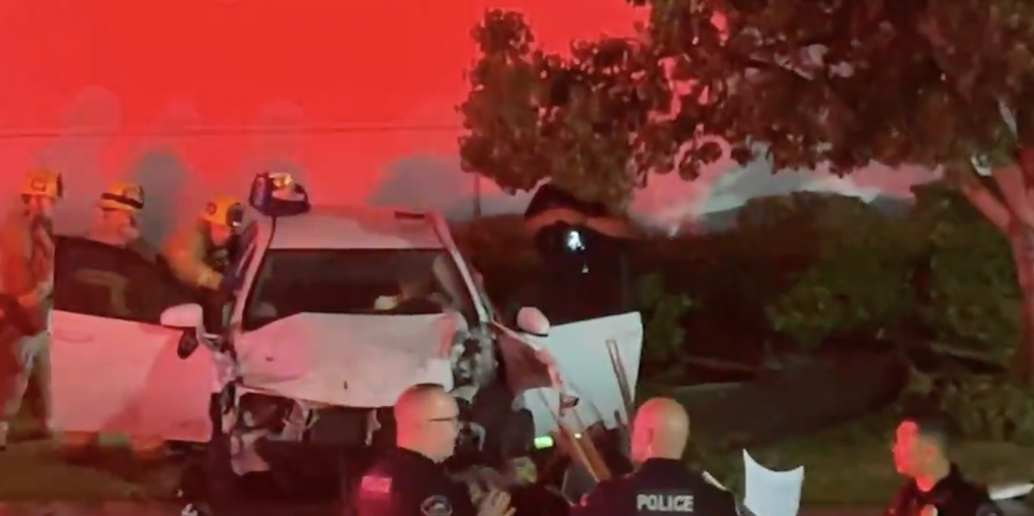 One of the vehicles involved was a white Scion. The driver was ejected from the vehicle and pronounced dead at the scene. Video from the Citizen App shows the vehicle with significant damage, and it appears the victim is pinned under the Scion.