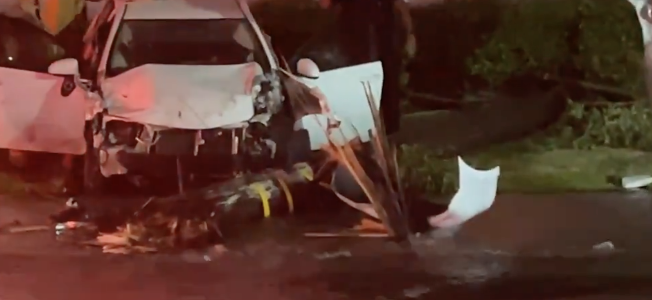 The force of the crash caused the vehicles to careen into a utility pole, and then a fire hydrant. The utility pole was knocked down, and one of the vehicles sheared the fire hydrant.