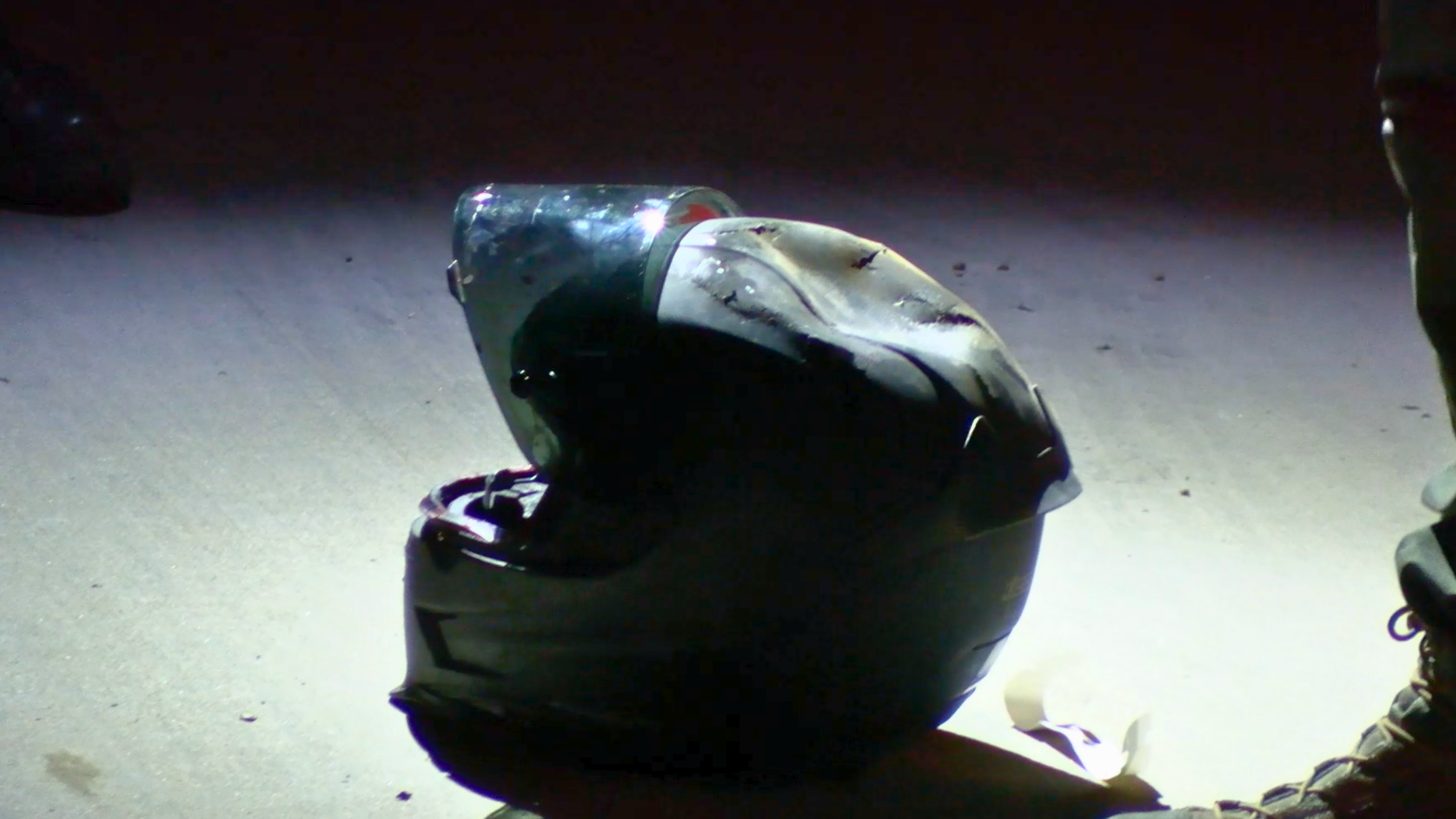 Video showed a portion of the man’s helmet was crushed by the blast. Blood was also seen on the sidewalk where the incident occurred.