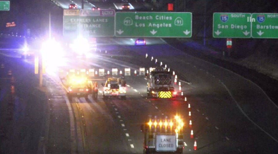 The incident was reported around 10:40 p.m. near the Main Street exit of the freeway, according to the California Highway Patrol.