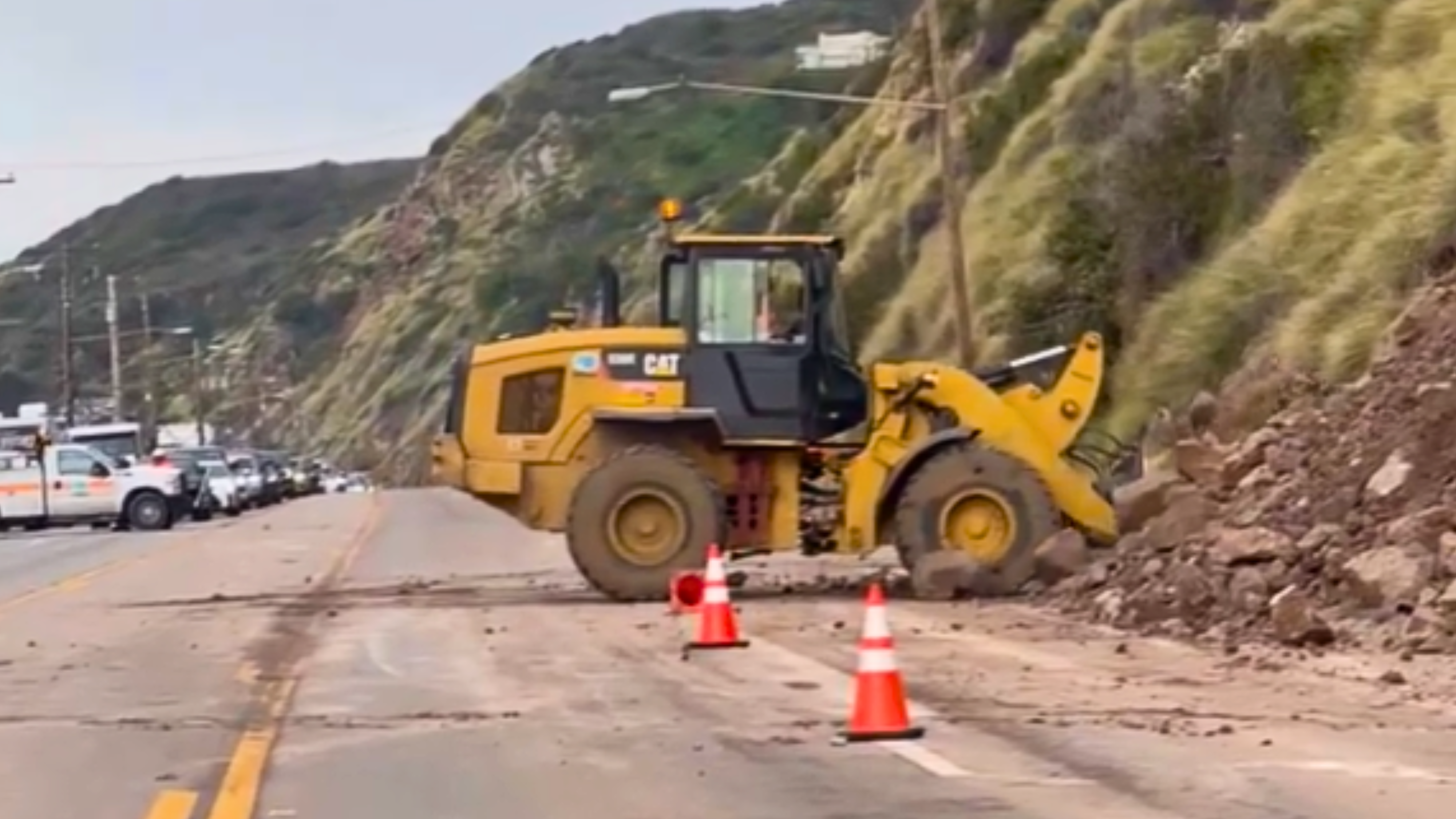 Video shared by the Sheriff’s Department showed a bulldozer pushing rocks and debris off of the closed highway.