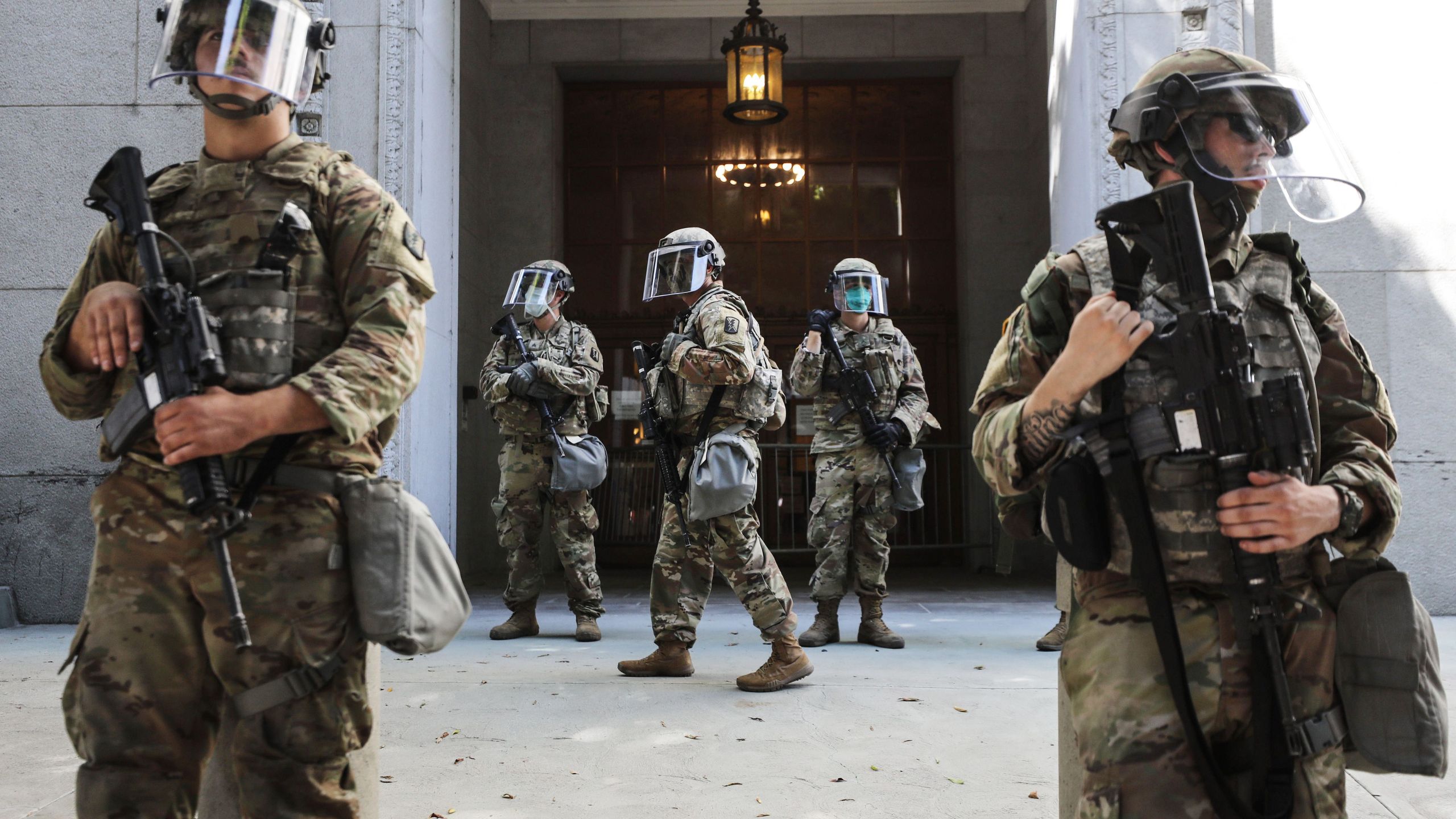 Soldiers did not interact much with protesters, instead being used to guard buildings and other infrastructure. In Sacramento, armed soldiers were stationed in front of the state Attorney General’s Office while armored vehicles were stationed near the Golden One Center, home of the NBA’s Sacramento Kings.