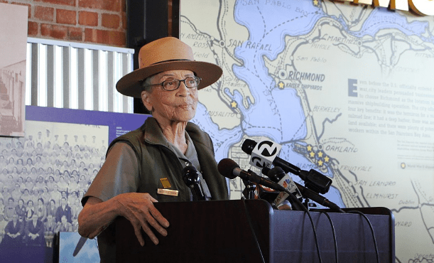 Soskin, 94, is a ranger at the Rosie the Riveter WWII Home Front National Historical Park in Richmond, where she leads tours and provides a history of women who worked in factories during wartime. She began working with the park service at 85.
