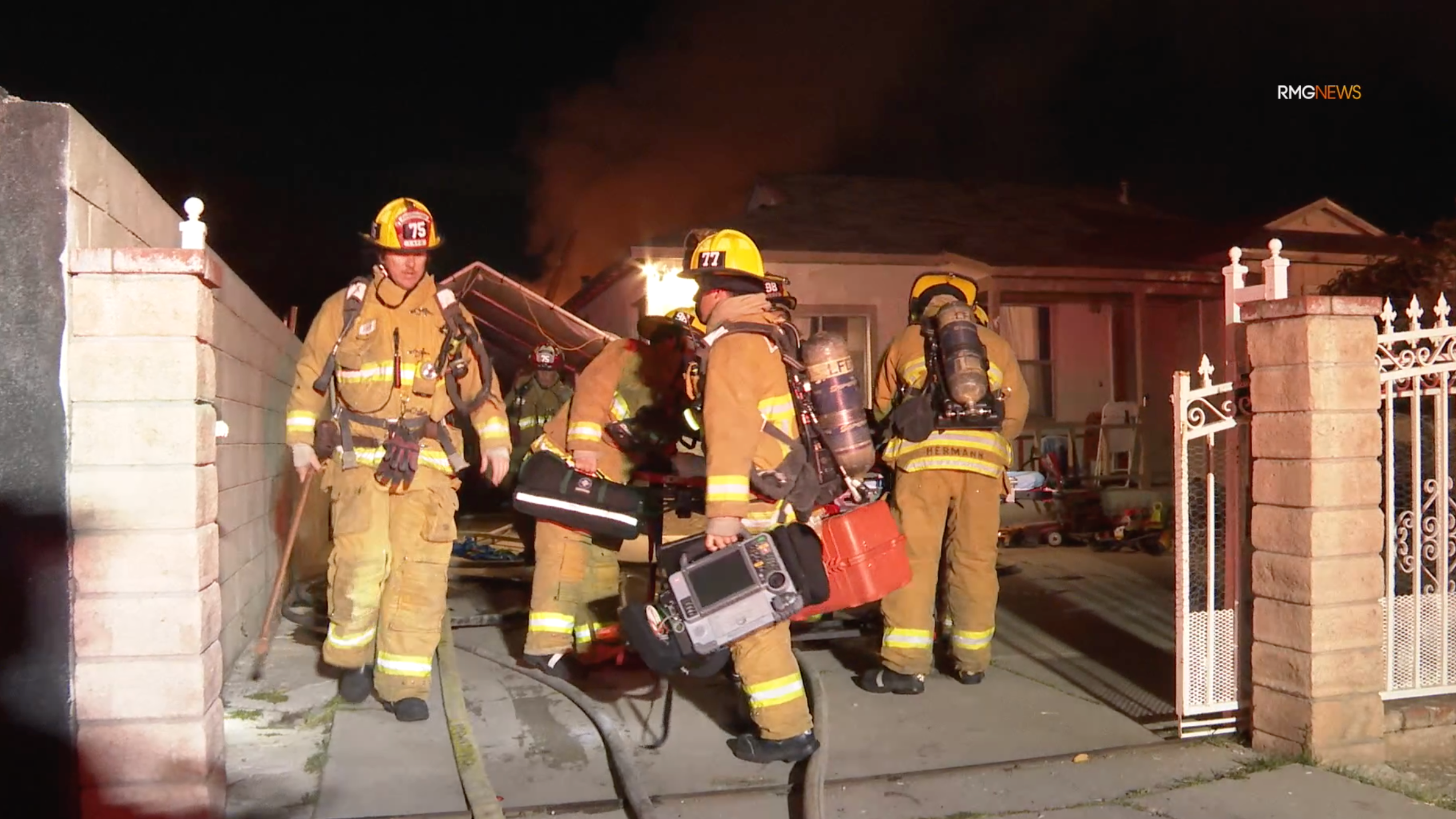 Upon learning that two people believed to be living in the garage were trapped inside, crews forced entry and located the victims, Los Angeles Fire Department Capt. Cody Weireter said.