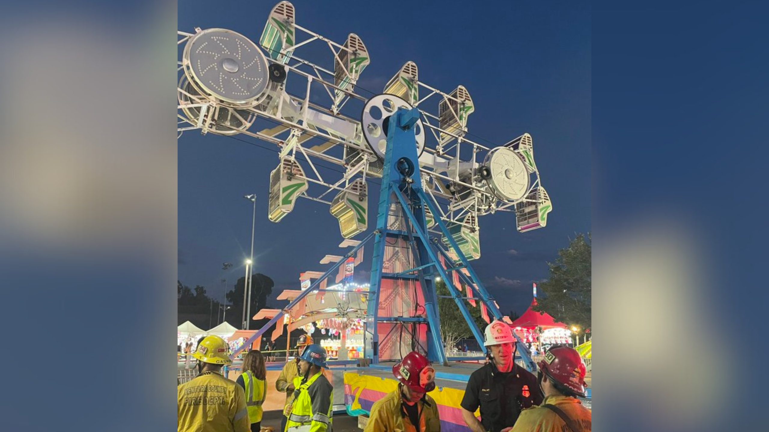 911 calls began flooding the Ventura County Fire Department when the Zipper ride at Conejo Creek Park South got stuck around 8 p.m. Sunday.