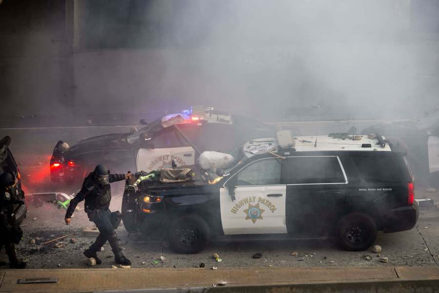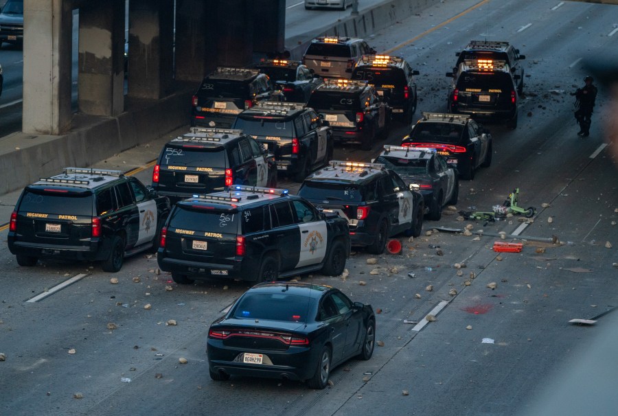 Sunday, however, was a different story, as protesters took to the streets and hurled projectiles – including fireworks and Lime scooters – at law enforcement officers, including Los Angeles Police Department and CHP officers as well as L.A. County Sheriff’s Department deputies; none of those three agencies enforce federal immigration laws.