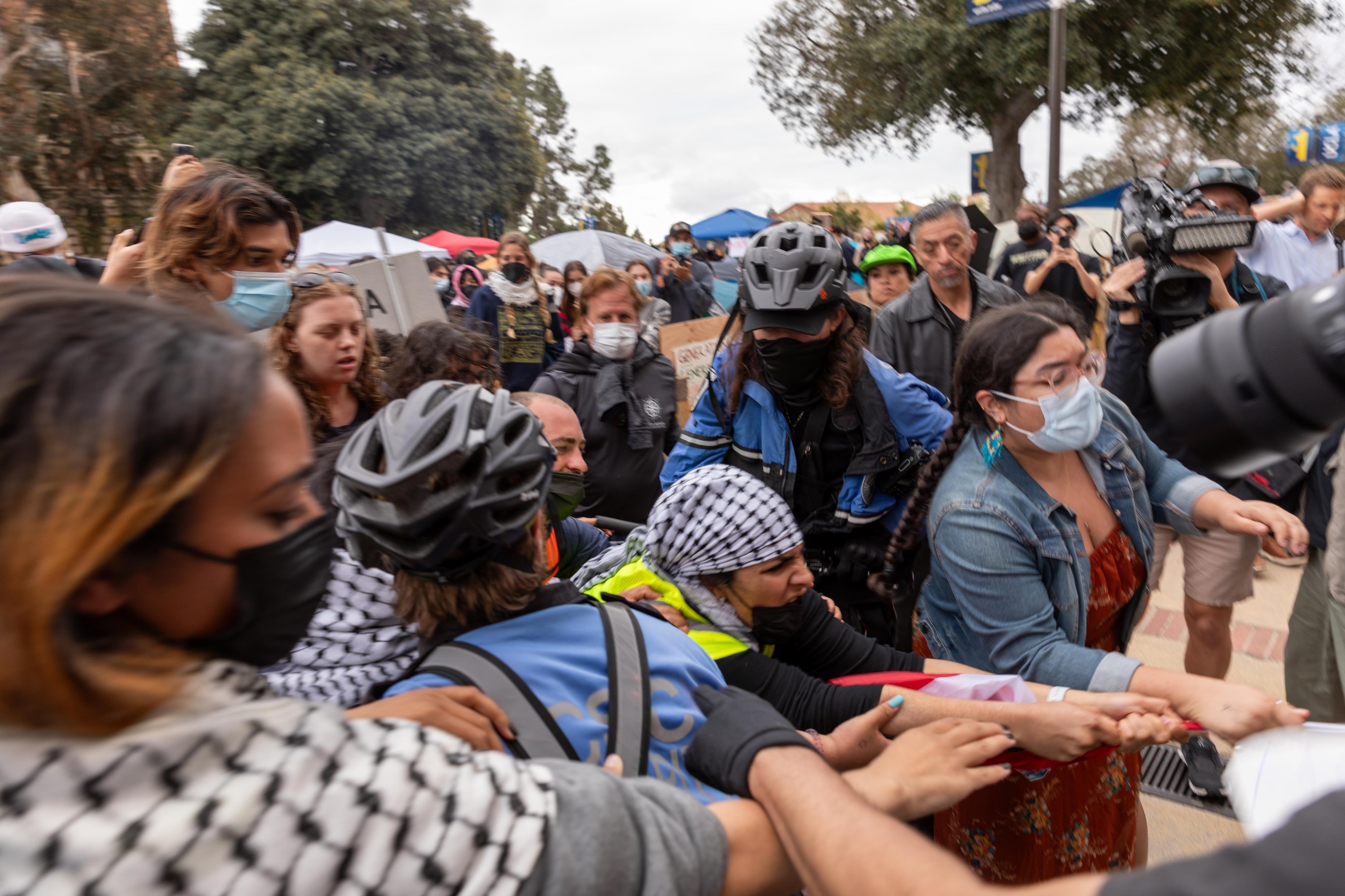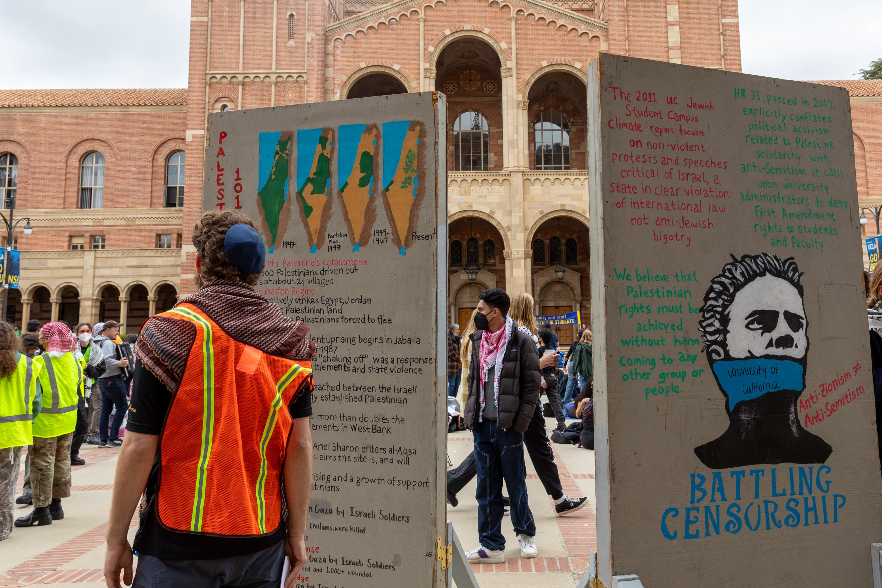 Pro-Palestinian demonstrators and pro-Israel counterprotesters squared off on the campus of UCLA this week as student protests over the Israel-Hamas war developed on a number of college campuses.