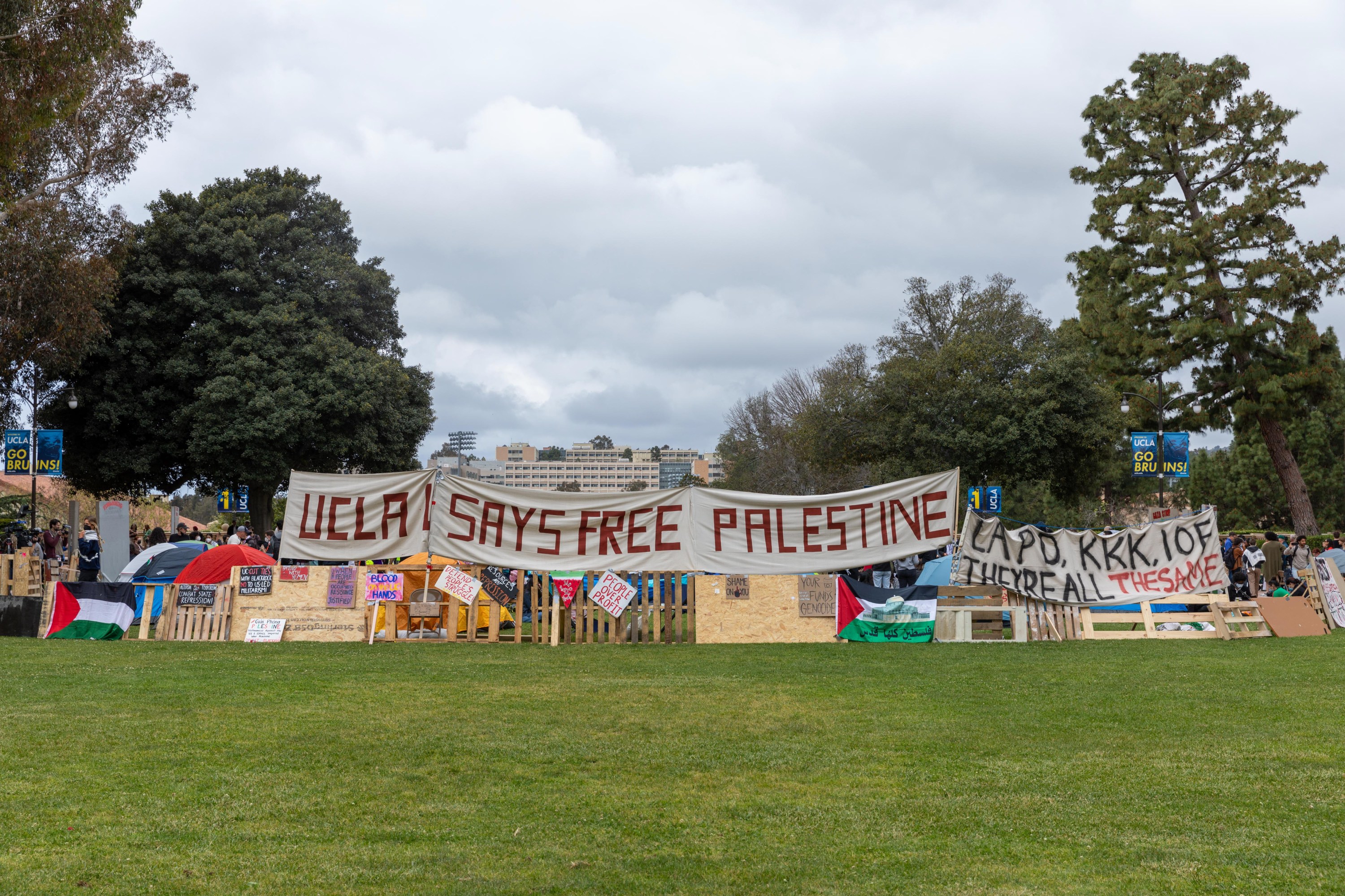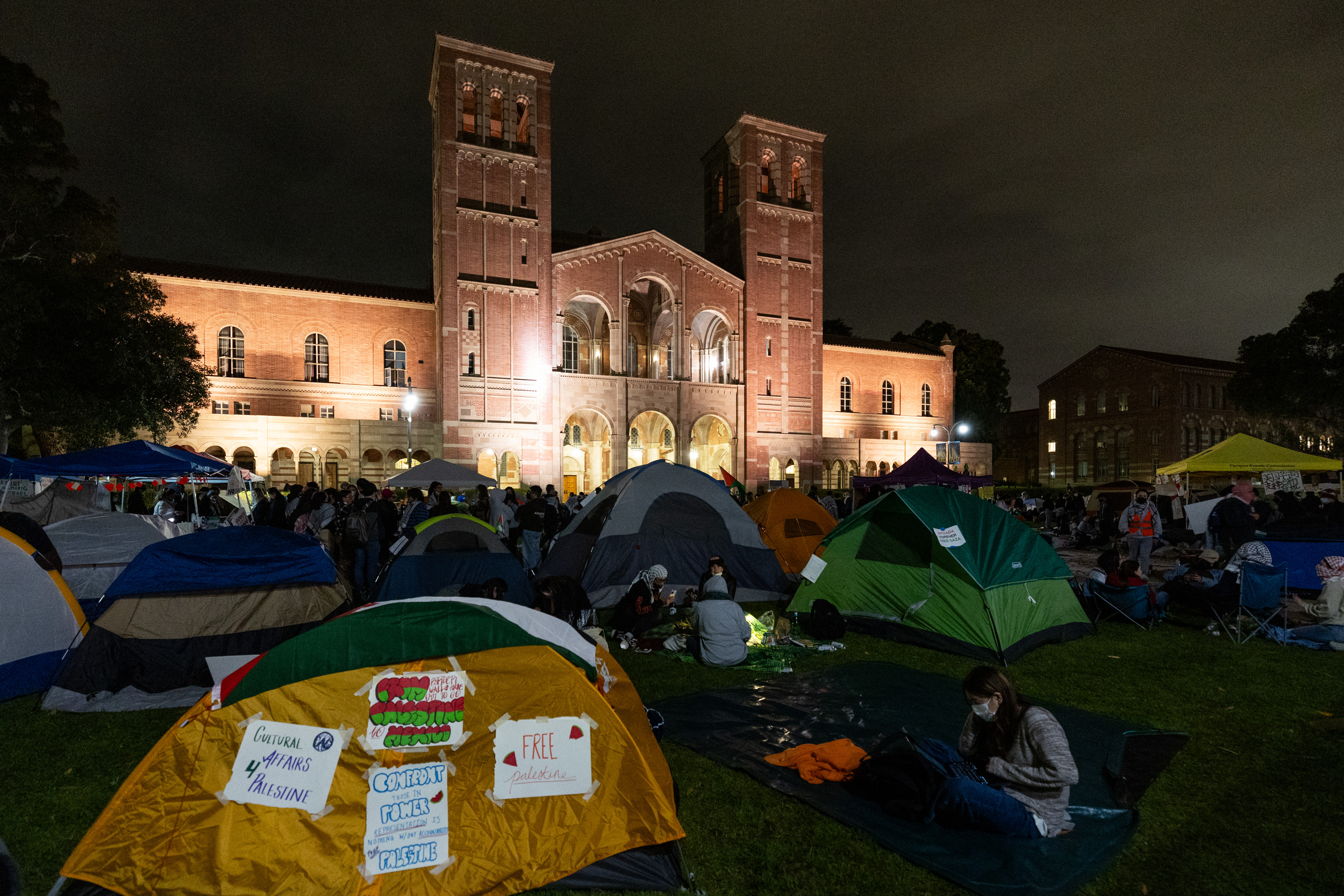 LOS ANGELES, CALIFORNIA – APRIL 25: Students encampment protest at the University of California, Los Angeles in solidarity with Palestinian people, in Los Angeles, California, United States on April 25, 2024. (Photo by Grace Yoon/Anadolu via Getty Images)