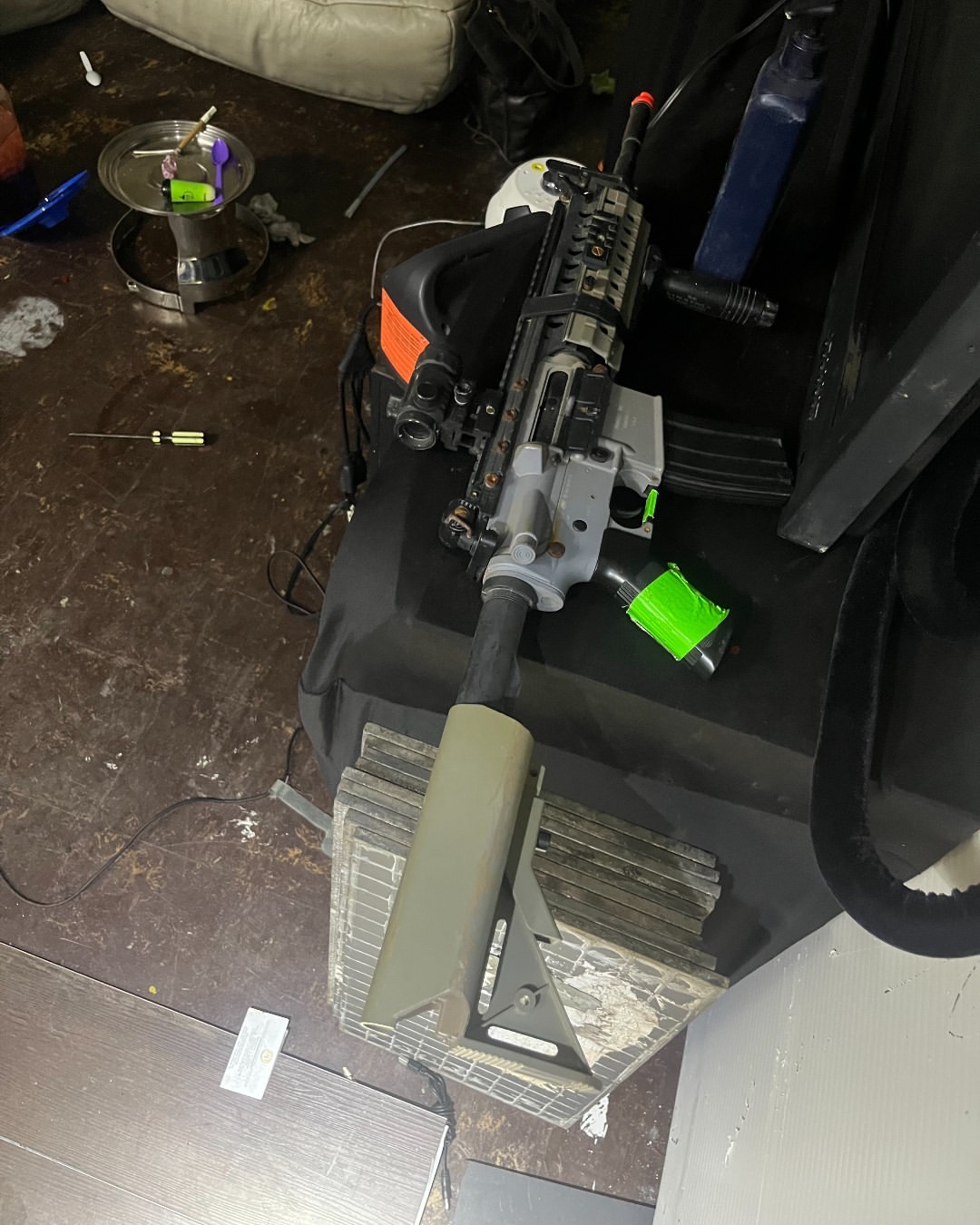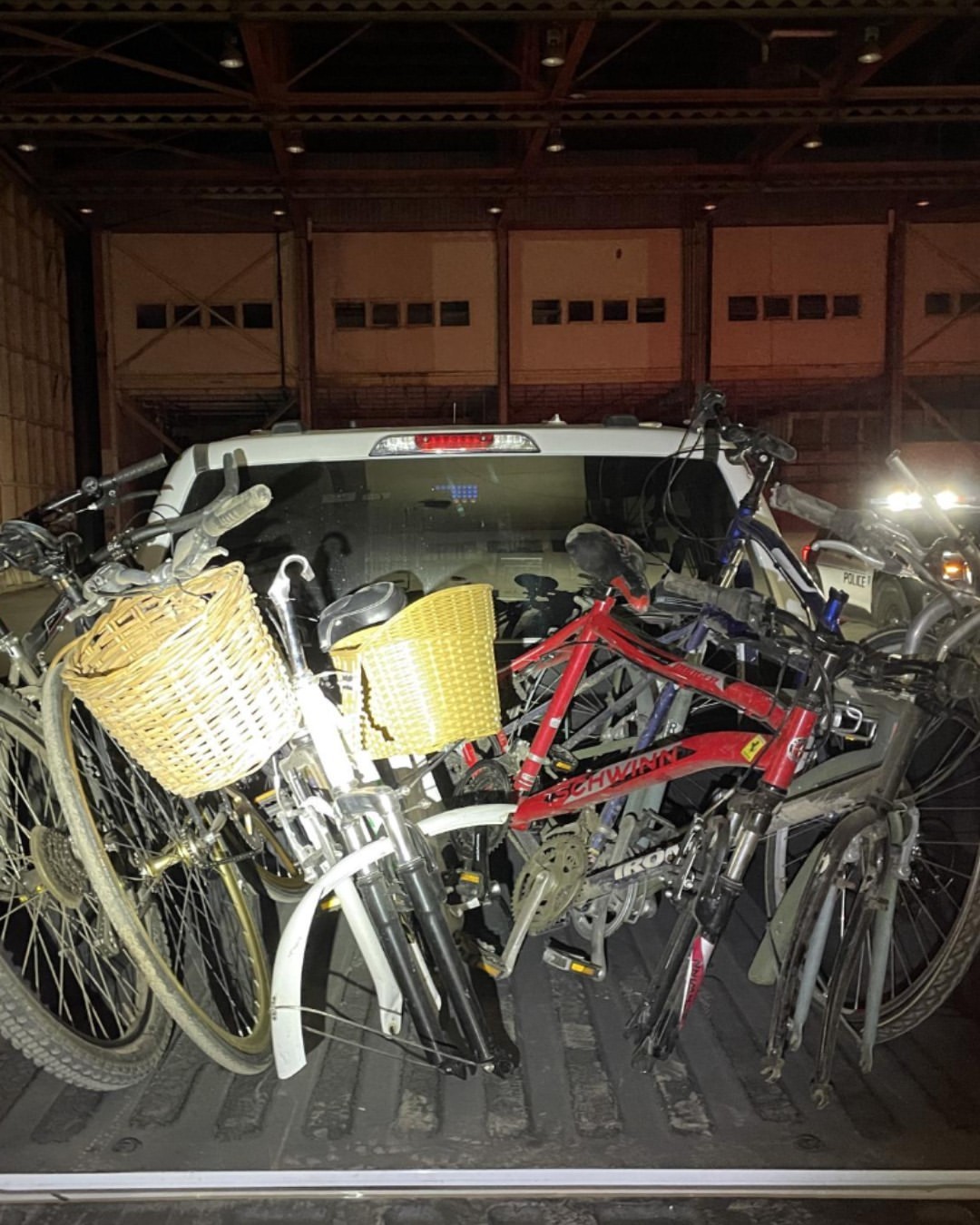 In addition to the night-club like atmosphere, there were several items inside the room, some allegedly stolen. They included 11 bicycles, numerous spools of copper wire, an illegal M-800 firework, personal property from Irvine residents, two airsoft rifles and drug paraphernalia.