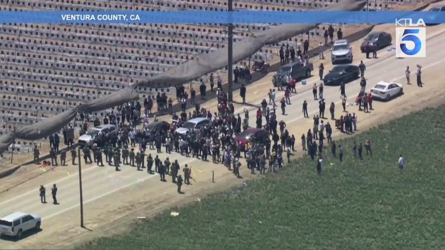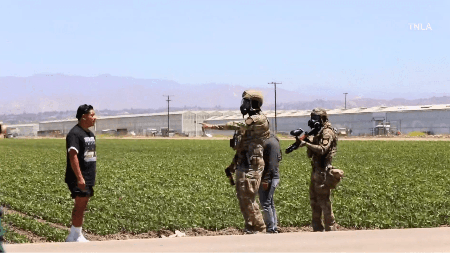 Video from Sky5 showed a large federal law enforcement presence in the nearby fields, with witnesses saying agents were detaining workers.