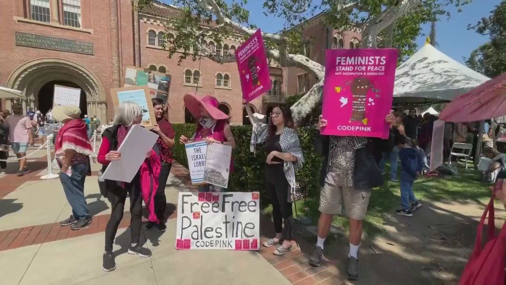 The Los Angeles Police Department had several officers stationed at USC, but no arrests were made during the peaceful protest.