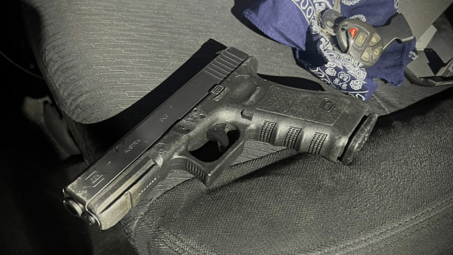 A loaded firearm found inside a vehicle that was pursued from Upland to Rancho Cucamonga on Jan. 7, 2025. (X/@UplandPD)