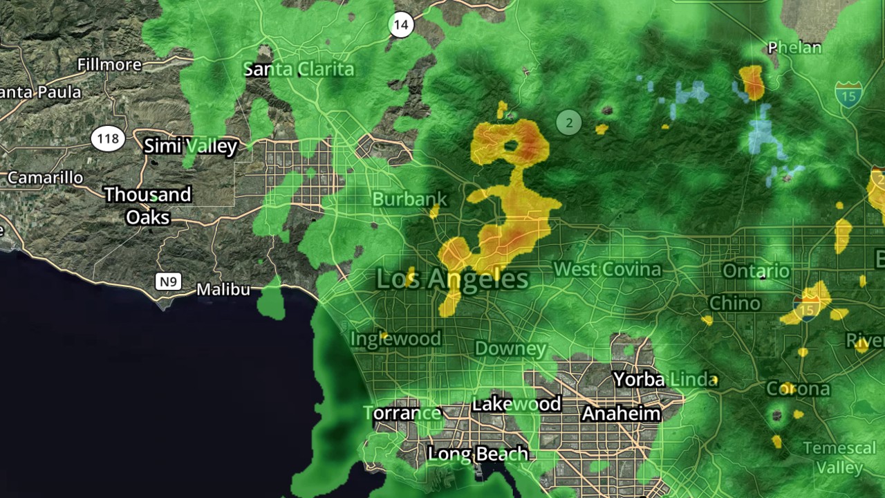 Heavier precipitation started moving in through L.A. County around 3:15 p.m. Rain rates of nearly half-an-inch were expected in a 30 minute window, according to gauges from the Weather Service.