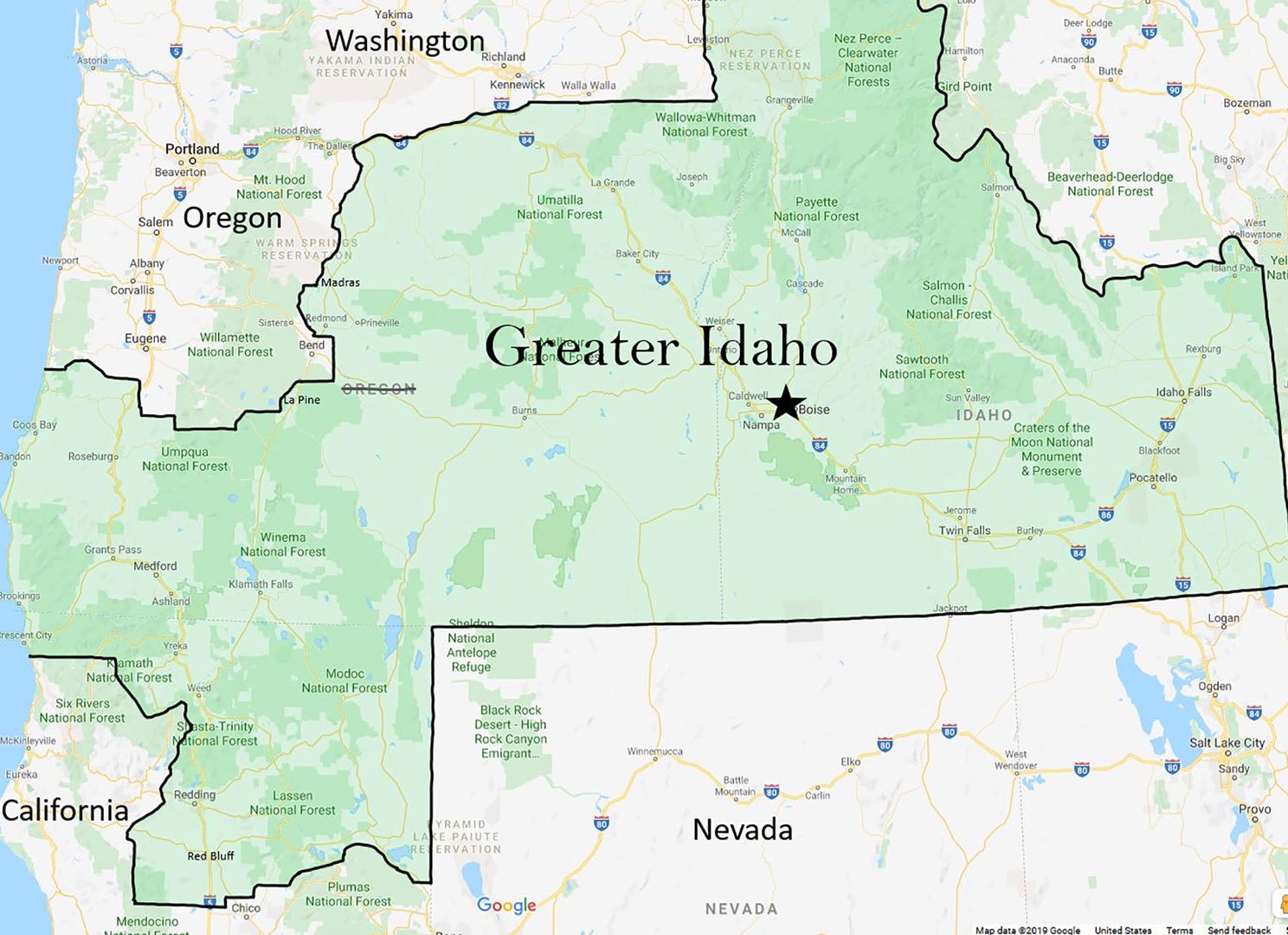 The grand plan for the movement also includes six northern counties in California, according to the Greater Idaho website.
