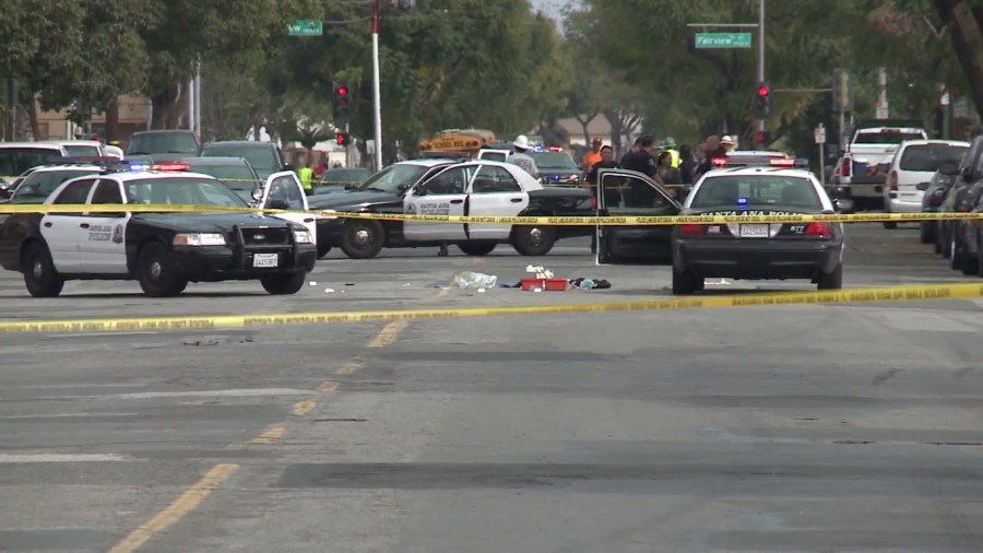 Called to the scene by witnesses who reported a stabbing, police shot a man who was believed to have violently attacked a woman in Santa Ana on Friday afternoon.