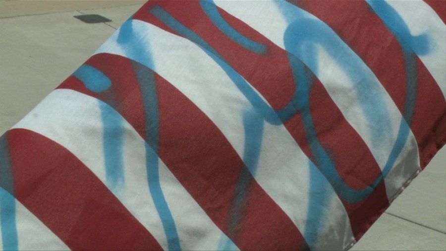 A flag belonging to Army veteran Michael Rank was spray painted with the “F” word along with USA, according to Fox 5 San Diego.