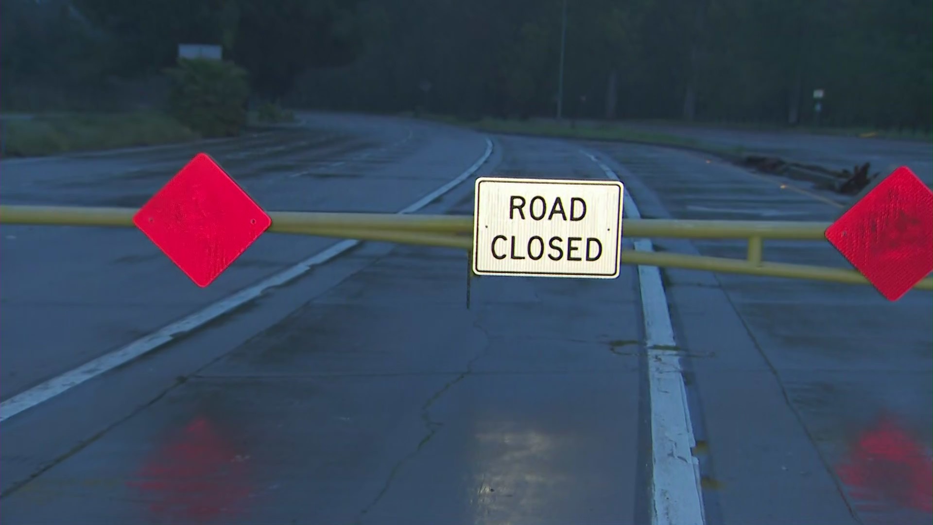 A road closure sign seen on Burbank Boulevard in the Sepulveda Basin on Feb. 20, 2024. (KTLA)