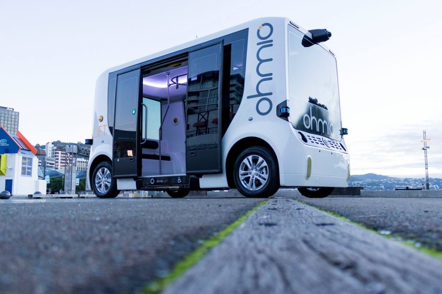 The electric shuttle vehicles are built by Ohmio, a New Zealand company that established its new headquarters in a facility near the Riverside Airport as part of the purchasing agreement.