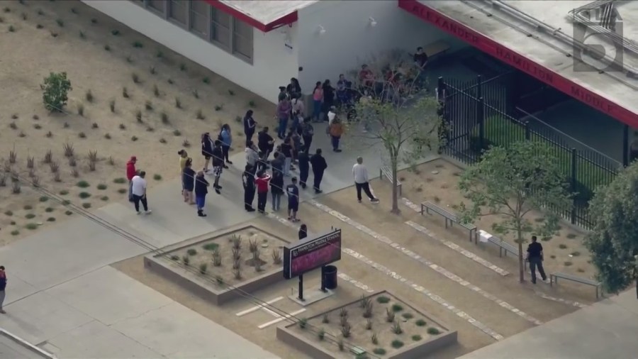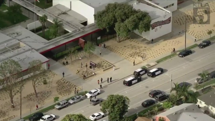 Parents were also seen gathering outside the school, presumably trying to get more information on the situation. Students were moved to the auditorium as a precaution, according to KTLA 5’s Rich Prickett.
