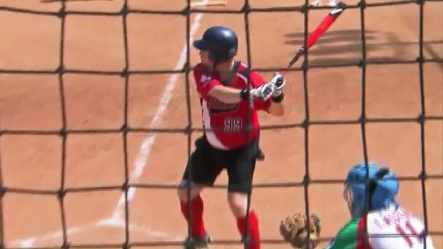 Canada takes on Mexico in a softball game at the Special Olympics World Games on July 29, 2015. (Credit: KTLA)
