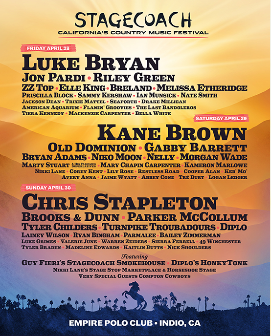 The country music festival will take place at the Empire Polo Club April 28 to April 30.
