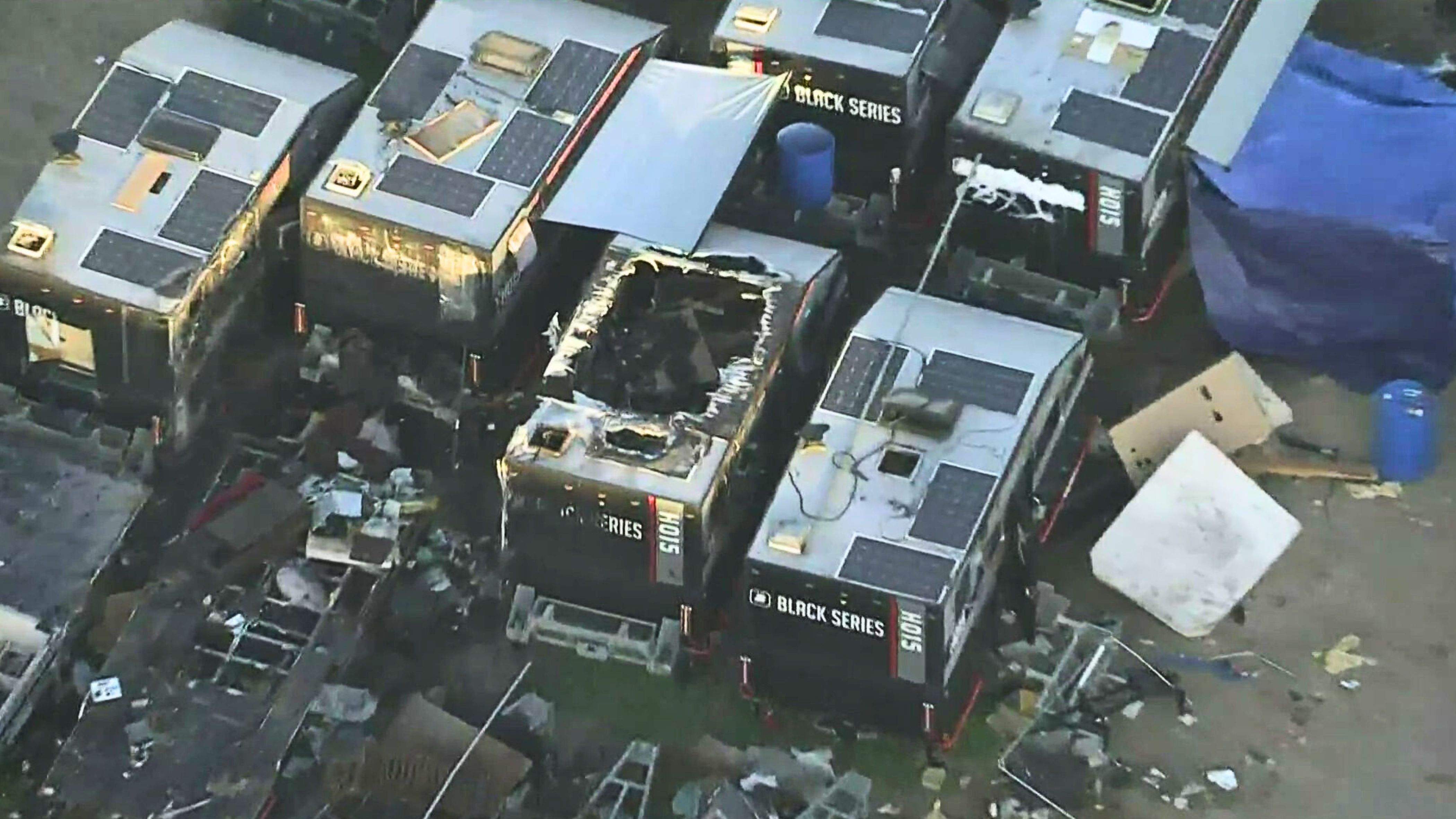 “All the trailers are damaged, broken, flipped over … they’ve been set on fire so there’s been big fires. You know we have to go look, make sure it’s not our cars that are caught on fire,” said Gerardo Torres who works nearby.