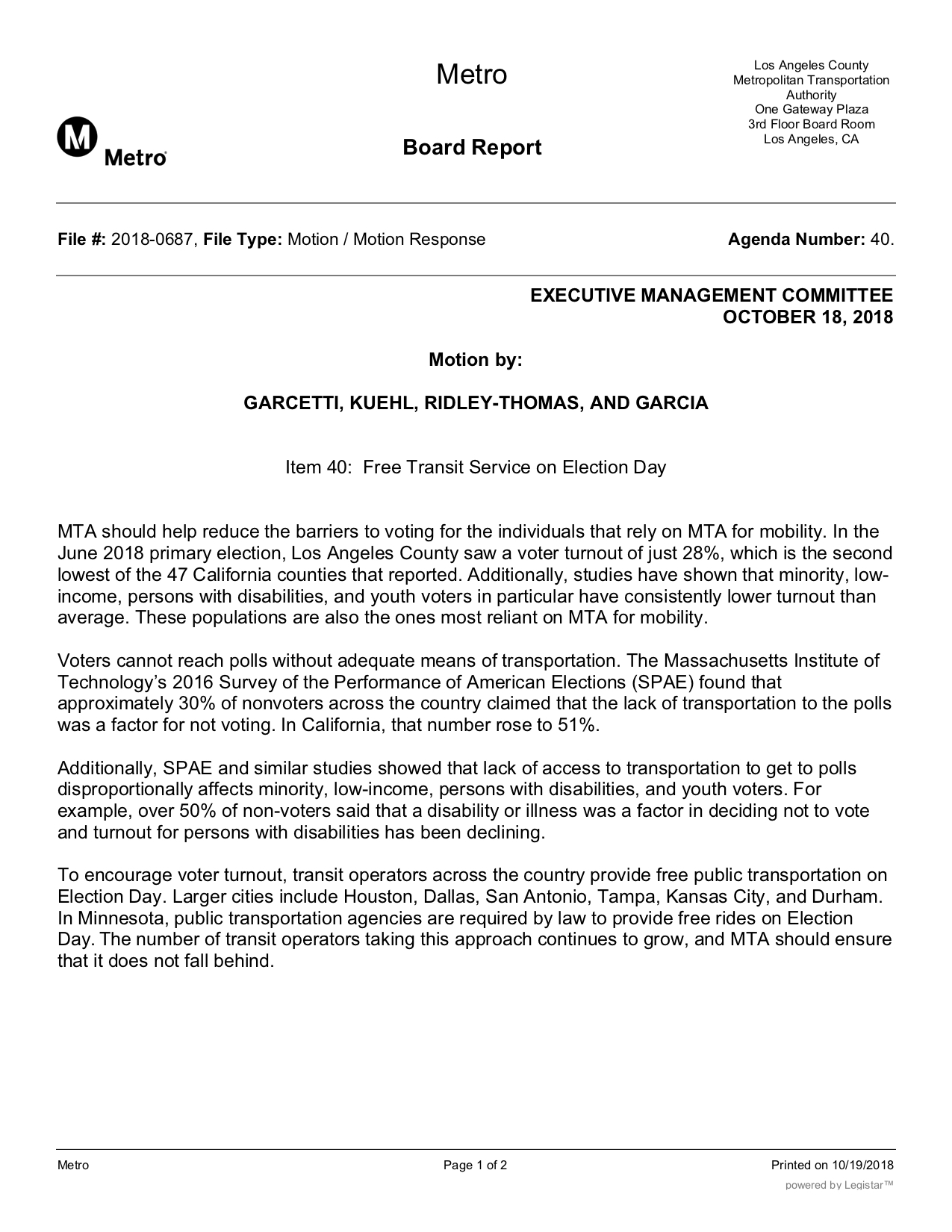 “A lack of transportation should never stand between a voter and the polls,” Los Angeles Mayor Eric Garcetti said in a statement.