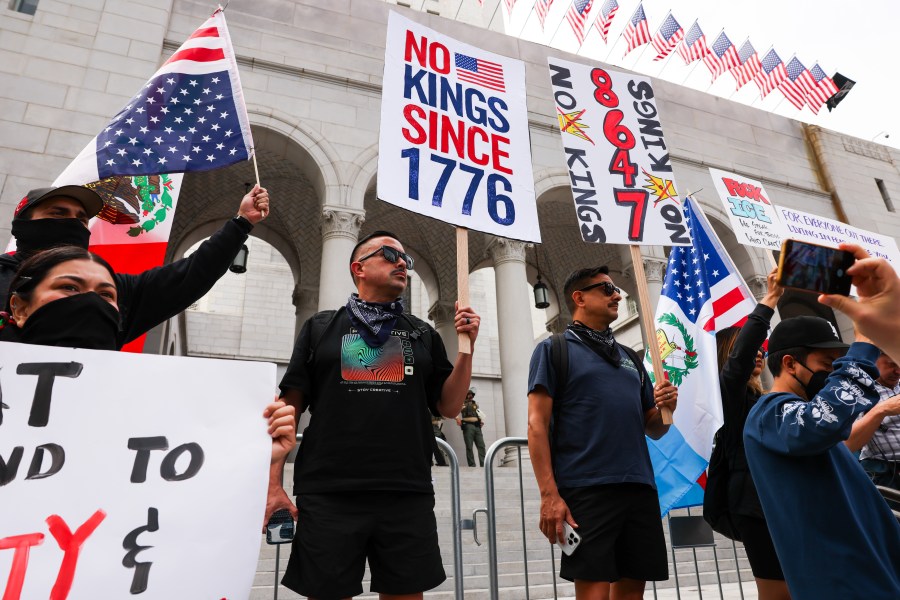 The “No Kings” rallies first gained traction earlier this year following federal enforcement actions, including ICE raids and National Guard deployments in the Los Angeles area. In June, thousands joined protests across Greater L.A. — most of which remained peaceful — though a few incidents prompted Mayor Karen Bass to impose a temporary curfew in a one-square-mile section of downtown.