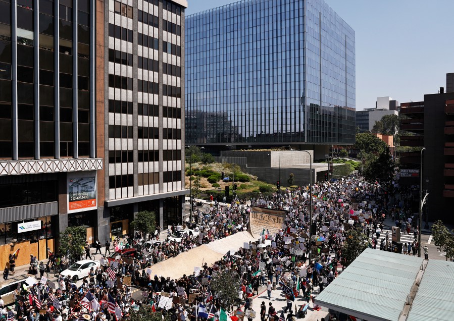 The Los Angeles gathering is one of more than 2,700 events planned across the country, including in Memphis, Portland, Washington, D.C., and Chicago. Dunn described the demonstrations as a show of unity among cities that have supported each other during past protests.