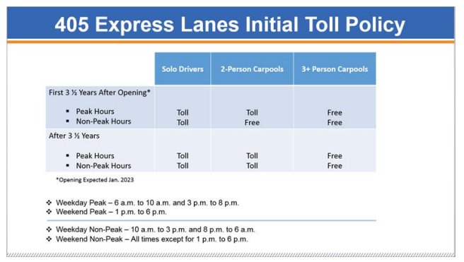 The initial toll policy for the 405 express lanes in Orange County. (OCTA)