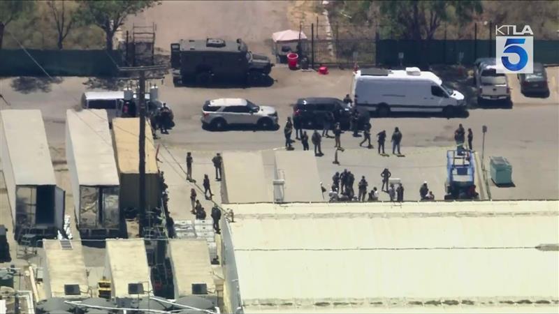 In Camarillo, video from Sky5 showed a large federal law enforcement presence in the fields, with agents detaining workers as several hundred protesters began gathering.