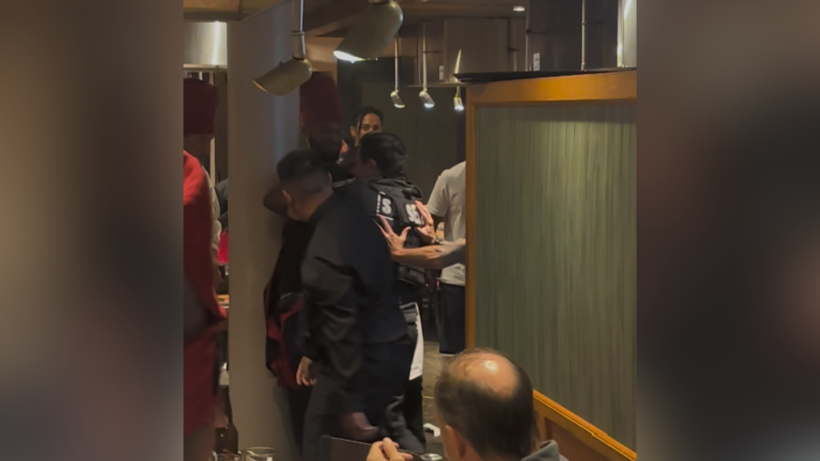 Video obtained by KTLA shows diners getting up hurriedly as the security guard and the employee began fighting, with the employee throwing a plate at the guard. Other patrons were seen trying to intervene as the altercation spilled across the restaurant.