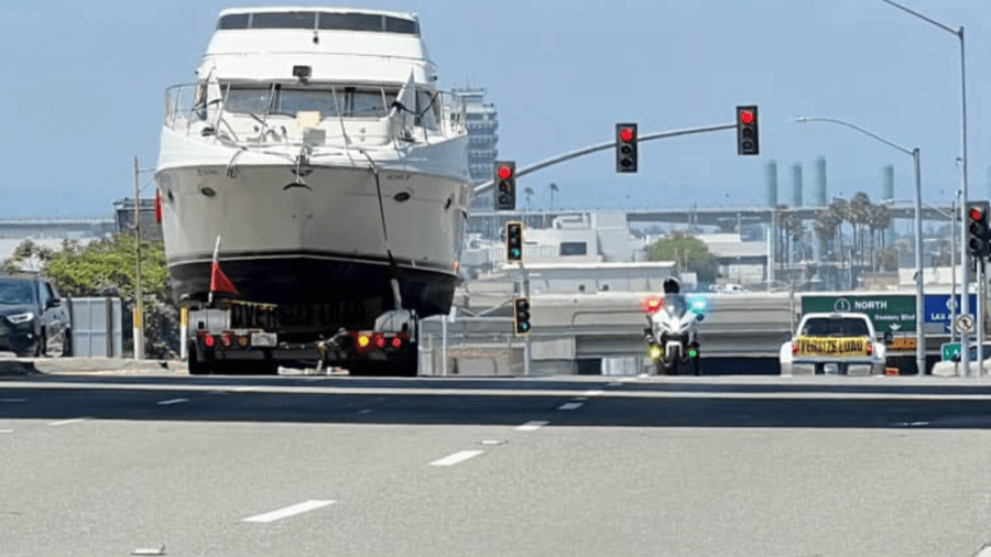 “The vessel’s sheer size proved too much for the tunnel’s clearance, causing a traffic standstill,” Los Angeles Airport Police said. “Quick-thinking LAXPD officers had to close down the affected lanes, carefully maneuver the boat in reverse and eventually guide it back onto Imperial Highway.”