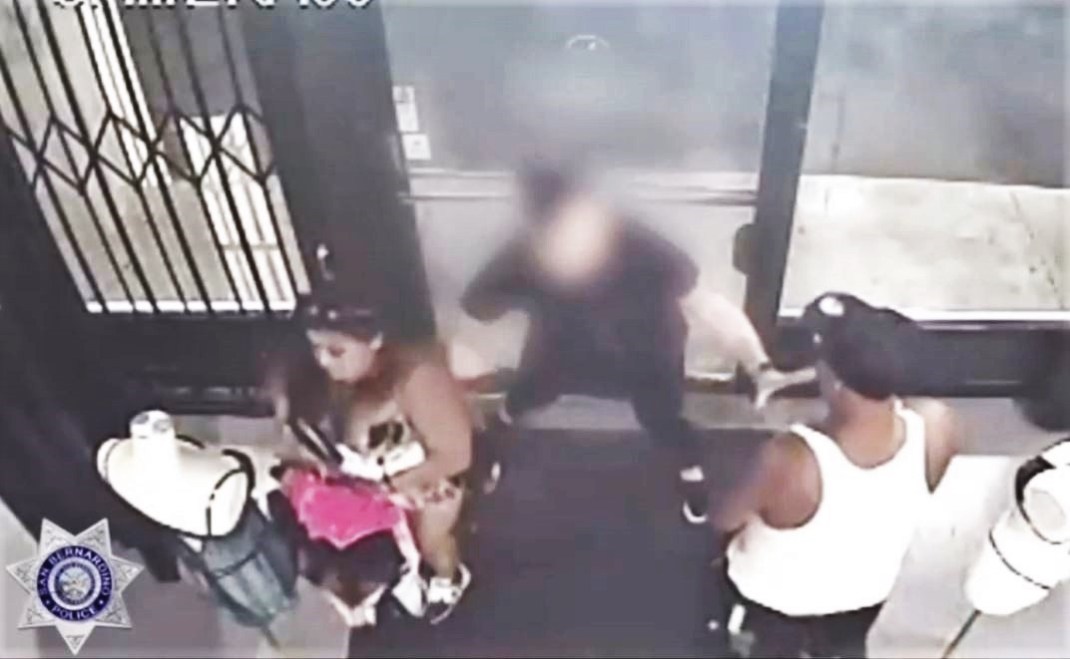 Security video captured two suspects walking into a store, assaulting employees and stealing merchandise from a San Bernardino lingerie store.