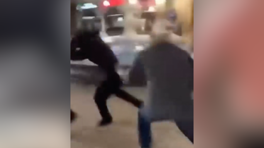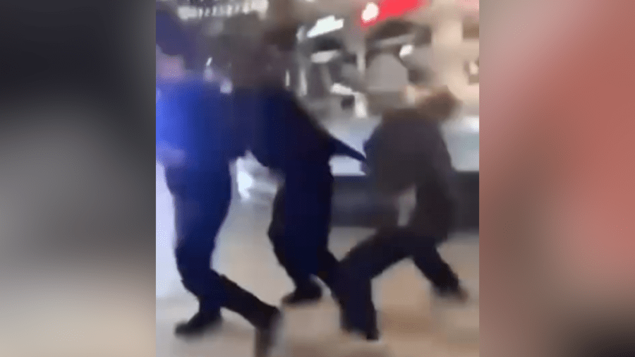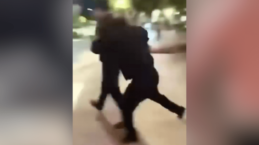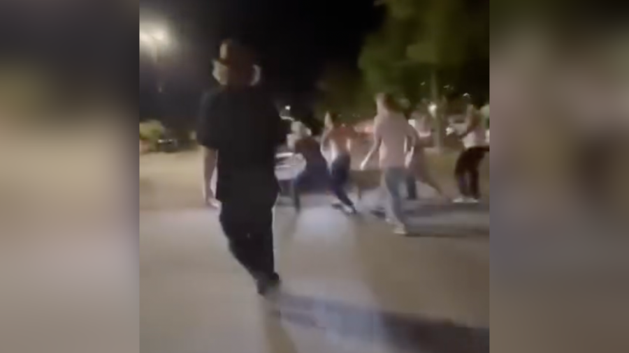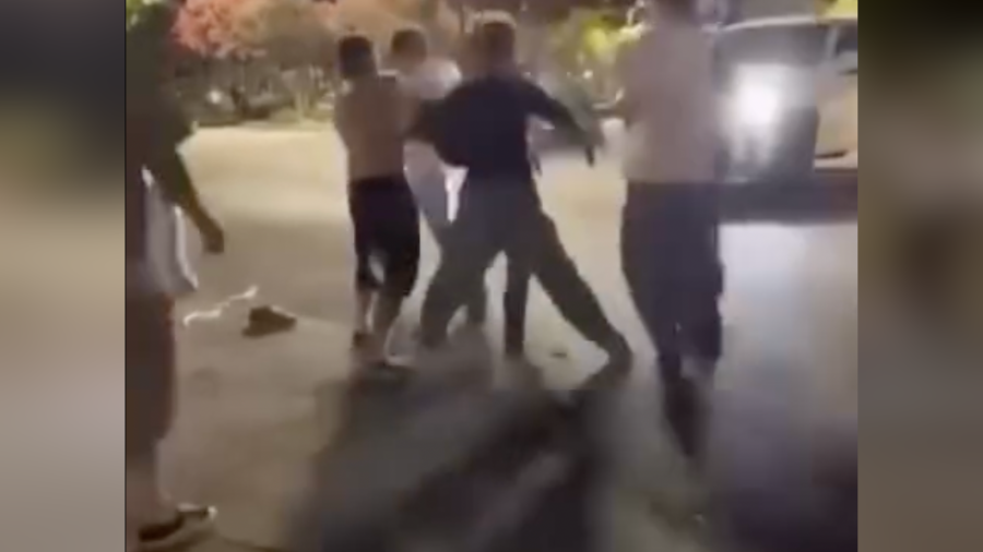 Another angle of the same altercation appeared to depict the moments that led up to the fight and showed the group attacking the victim, who appeared to be covering his head in self-defense.