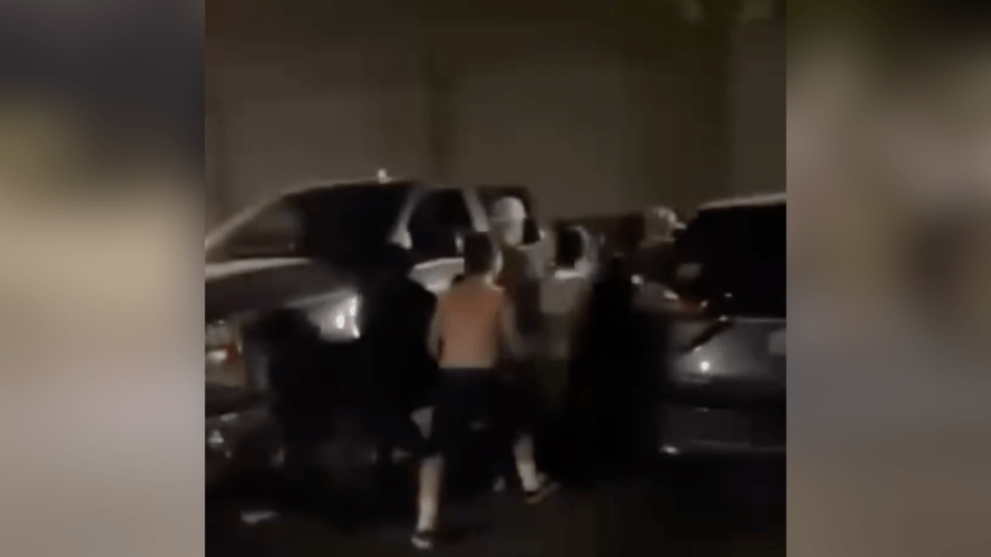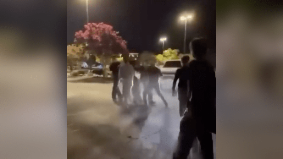 In the footage obtained by KTLA — which contains violence and much profanity; viewer discretion is extremely advised — a group of juveniles is seen punching and kicking one victim. Some are heard yelling for the group to get back into their cars, while others, clearly agitated, kept yelling and trying to fight.