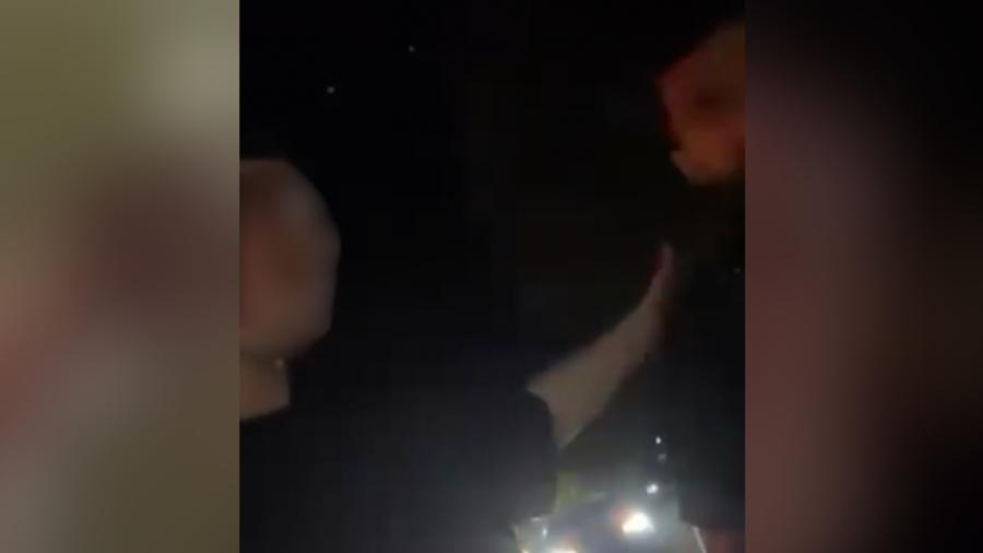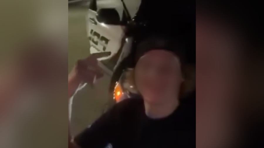 “I lying! Fake! Fake! Fake! I lying [sic],” the young man is heard saying in a mock accent, before transitioning to a different tone of voice. “Gangster s–t! I’m with all the cops…yeah, we own this s–t.”