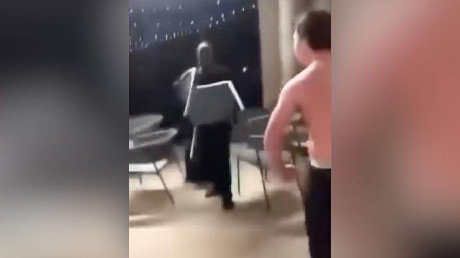 After that video ended, more footage of an altercation between a group of youths and a victim is shown. The victim, who was holding up a chair in self-defense, was surrounded by the group, who was hurling profanities at him.