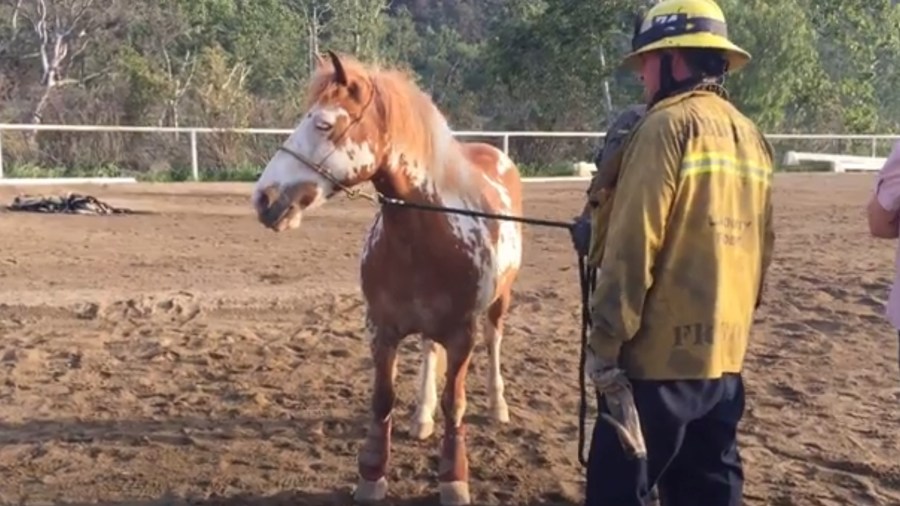 The horse was initially reported to be stuck in a ravine in the 12800 block of Little Tujunga Canyon Road, department spokesman Randall Wright said.